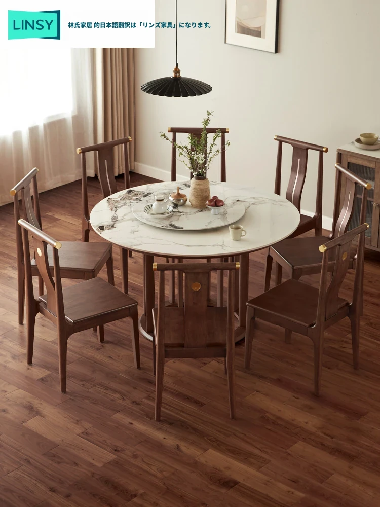 林氏家居2024新作!実木製の回転式ラウンドテーブルとチェアセット - 小さなお部屋に最適!スタイリッシュで耐久性抜群の林氏木業LW1Rで、家族の団らんを楽しもう!