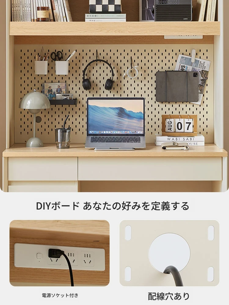林氏家居 大容量 書斎デスク&本棚一体型 室内用 勉強&作業用デスク 壁掛け式 スタイリッシュな学生・家庭用 学習スペースを整理整頓!林氏木業製品