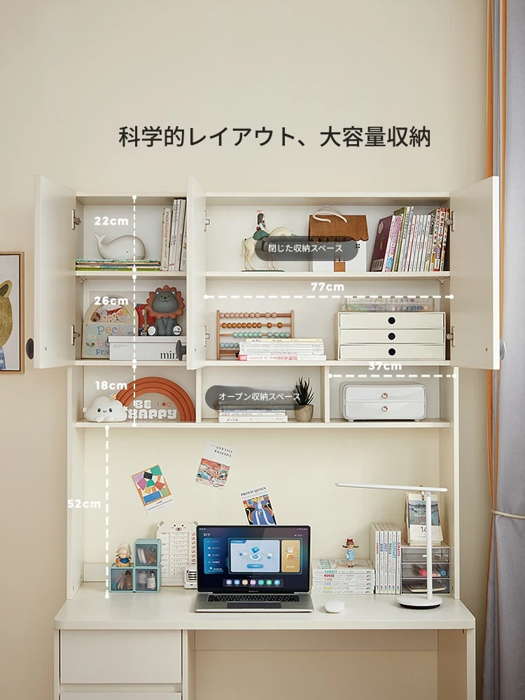リンシー家具 子供用学習机 書棚 クローゼット一体型 コンパクトデザイン 家庭用 小スペースに最適 使いやすさ抜群!リンシーウッドで安心の品質!