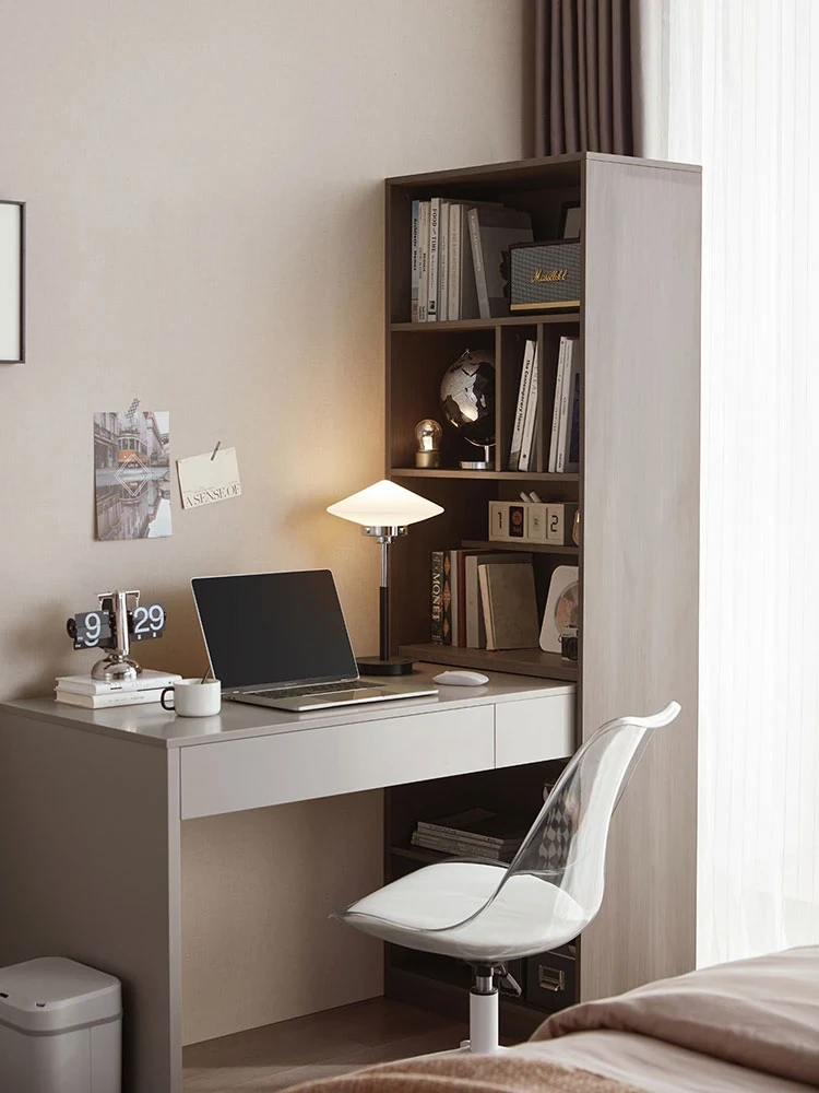 林氏家居 モダンミニマリスト デスク&ブックシェルフ 一体型 家庭用 小型住宅向け インスタ映え オフィスデスク 林氏木業 OV2V - スタイリッシュで機能的、快適な作業空間を実現!