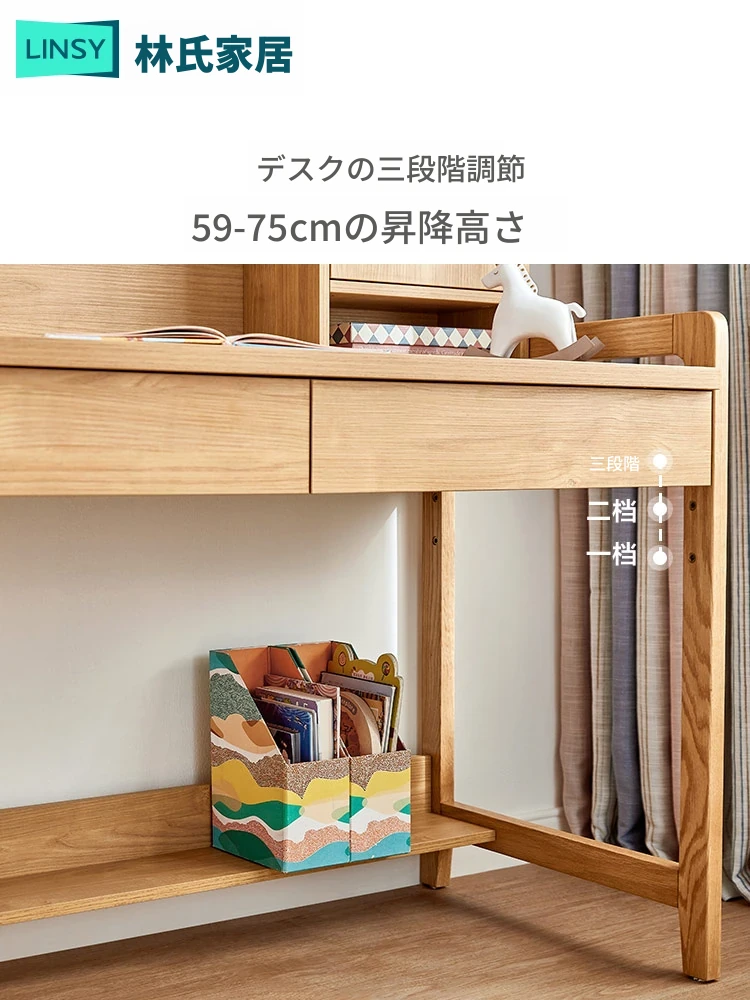 林氏木業の11.21CF無垢材製昇降式デスク - おしゃれなデザインで家でも学びやすい!学生や子どもに最適な学習デスク。快適な勉強環境を手に入れよう!