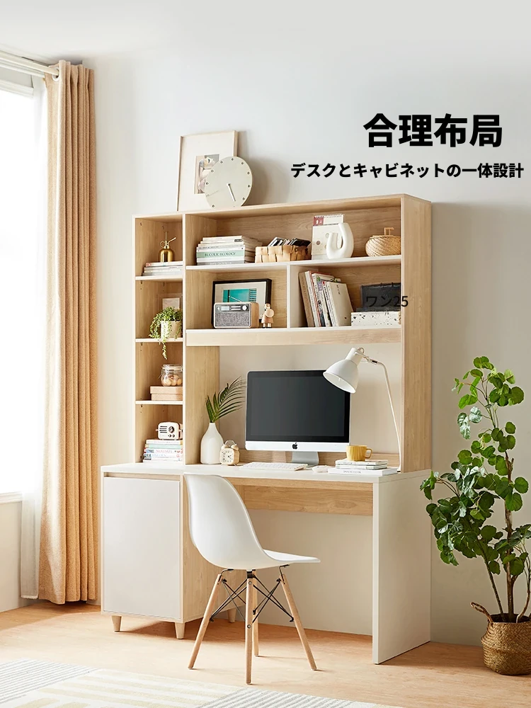 リンシー家具 書斎にも最適!デスク・シェルフ一体型 学習デスク 書棚付き コンピューターデスク 書き物に便利な大人向け 木製 家庭用 収納力抜群でおしゃれなデザイン【林氏家居】