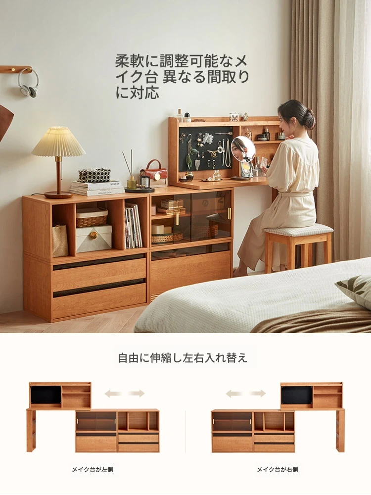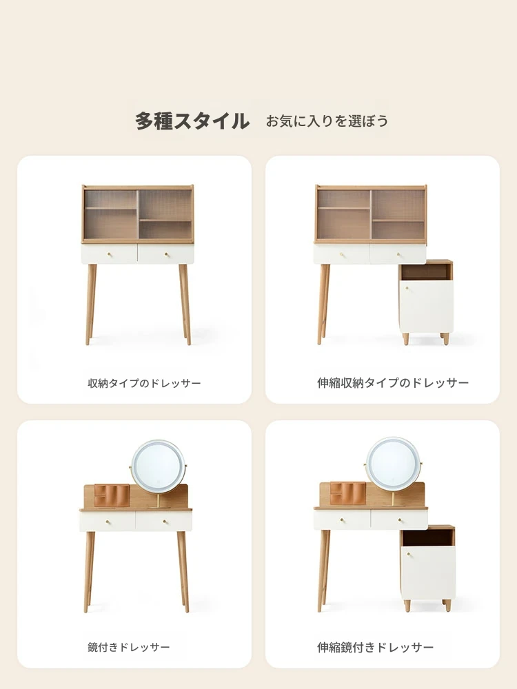 2024新作!林氏家具のクリーム色全木製ドレッサー兼サイドボード - 美しさを引き立てるスタイリッシュなデザイン、あなたの寝室を特別に演出します!