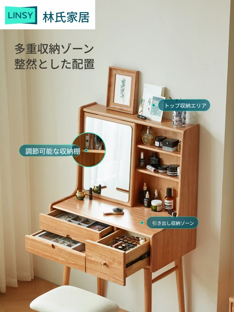 リンシー家具 北欧モダン シンプルなドレッサー ベッドルーム用 小型住宅向け 化粧台 リンシーウッド JU1C - スタイリッシュでコンパクト、毎日のビューティーケアを格上げする理想のアイテム!