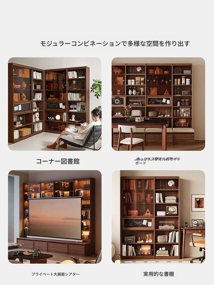 林氏家居の自由に組み合わせ可能なガラス扉付き本棚、階段下の収納キャビネット、リビングルームにぴったりな展示モジュールキャビネット!おしゃれで機能的な収納を実現し、空間を有効活用しましょう。