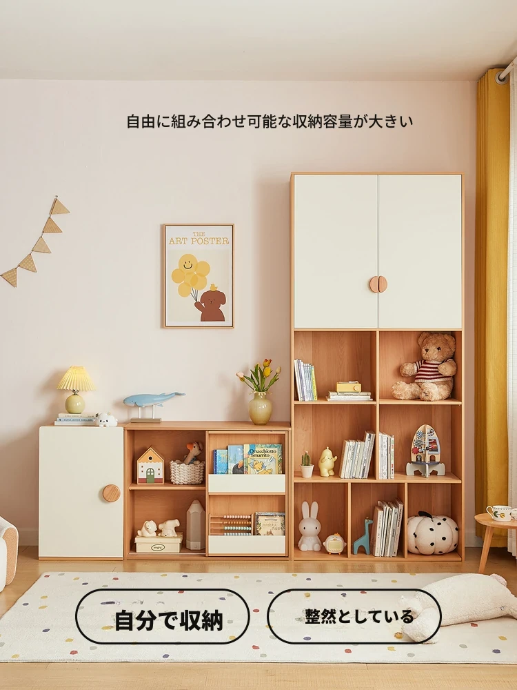林氏家居の子供用ドア付き防塵書棚 - コンパクトなリビングルームに最適な収納・ディスプレイキャビネット!おしゃれで機能的、育ち盛りのお子様にぴったりのアイテムです。
