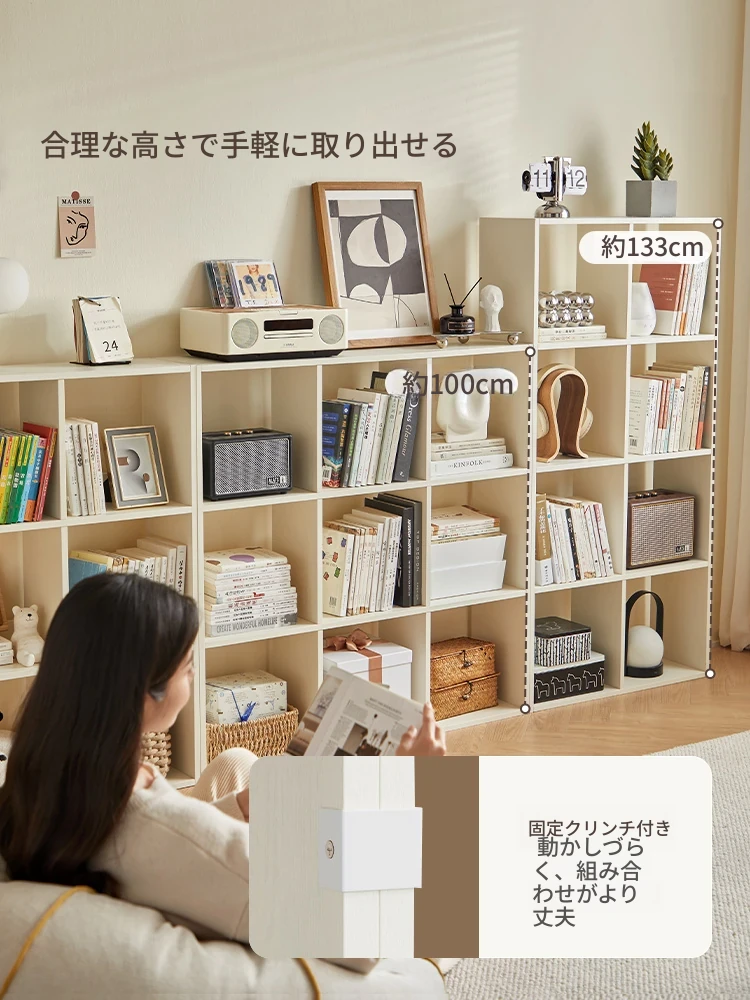 リンシー家具の多機能書棚 - 防塵設計でお部屋をスッキリ!自由に組み合わせ可能な格子型収納キャビネット。リビングや壁面にぴったりの魅力的なディスプレイ収納です。