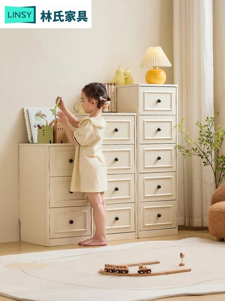 リンシー家具 キッズ用クリーム風5段チェスト ベッドサイド・ウォールストレージ 小型収納キャビネット - スタイリッシュで機能的なデザイン、子供部屋を可愛く演出!安心・安全素材使用。