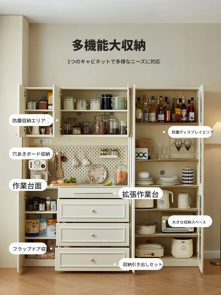 林氏家具 北欧スタイル ウォールシェルフ付きダイニングキャビネット 家庭用リビング収納庫 おしゃれで実用的なキッチンキャビネット【林氏木業】