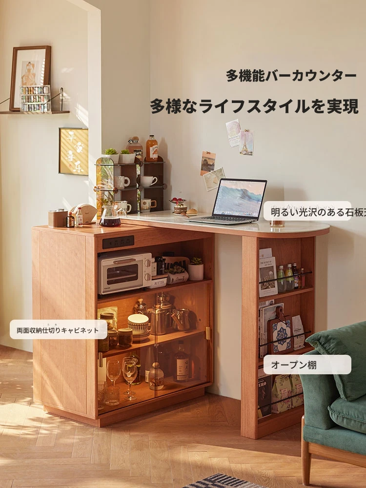 リン氏家具 リビング用 壁付けダイニングサイドボード 岩板デザイン 多機能アイランドストレージキャビネット 林氏木業 KQ2T - スタイリッシュな収納でお部屋をすっきり整理!
