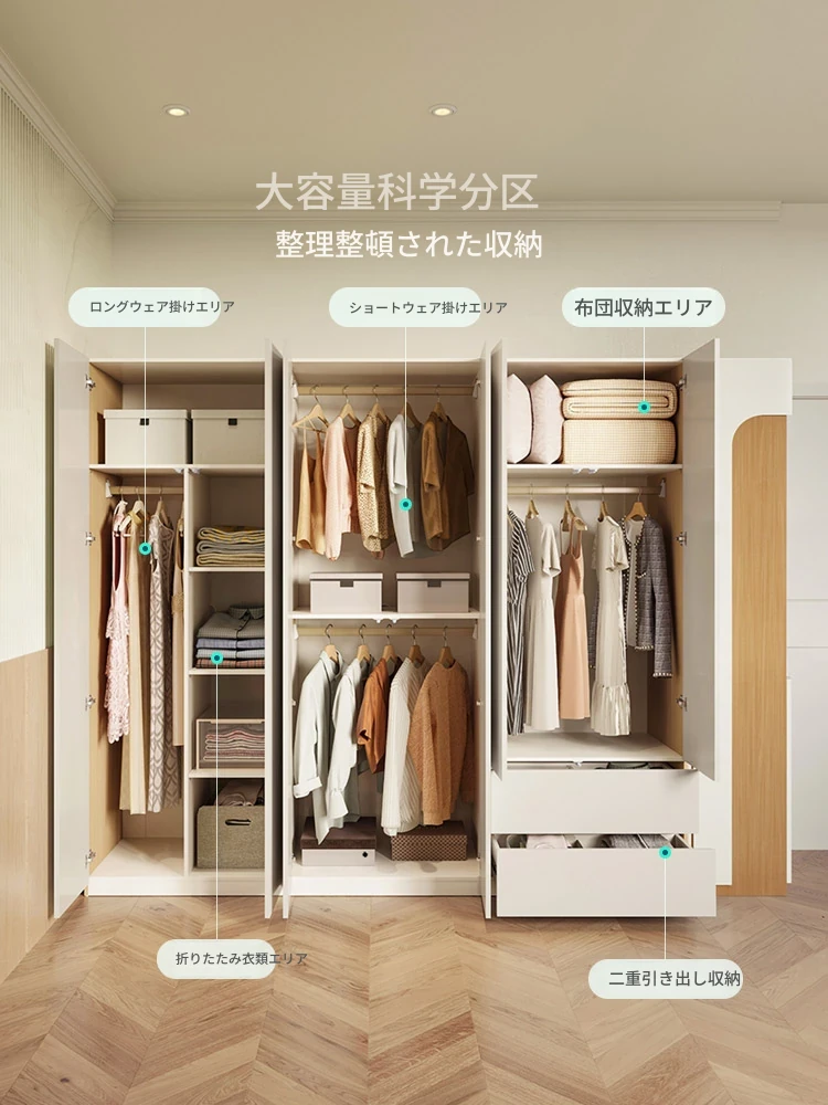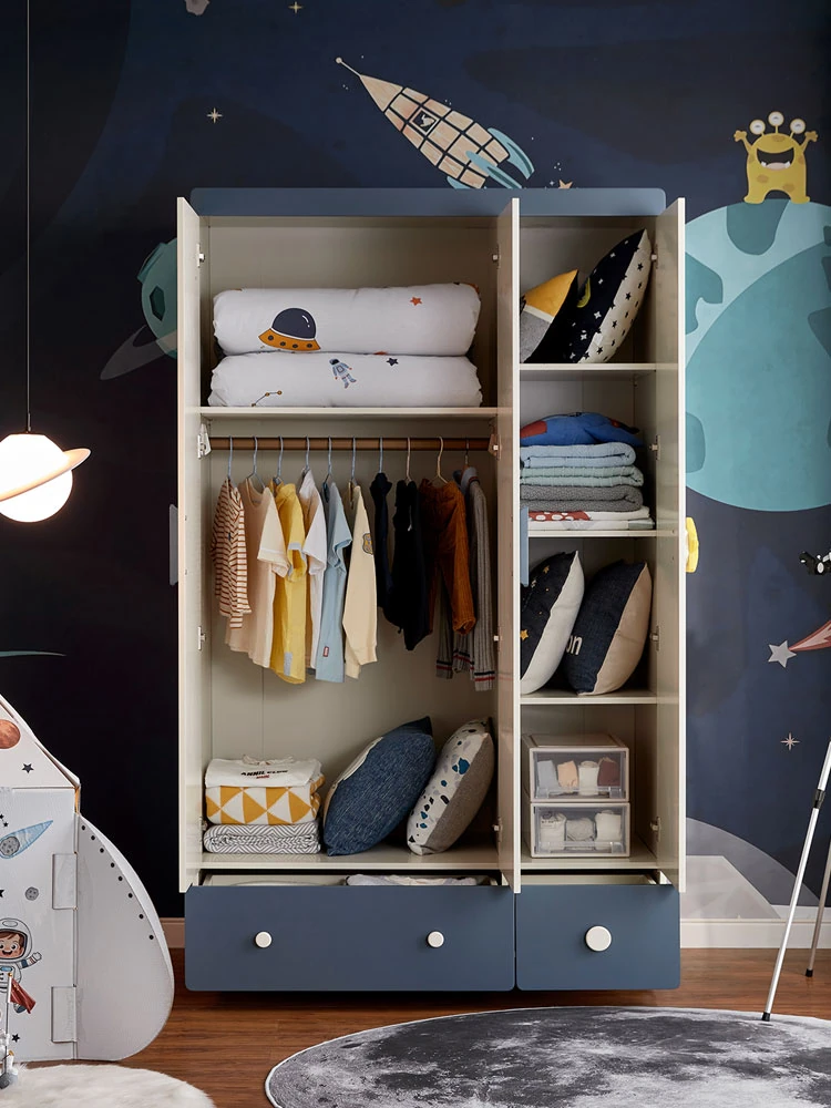 リン氏家具 モダンシンプル キッズクローゼット 家庭用 寝室 小型三ドア 船形クローゼット 収納力抜群 おしゃれなデザインでお子様のお部屋をスマートに彩ります!リン氏木業