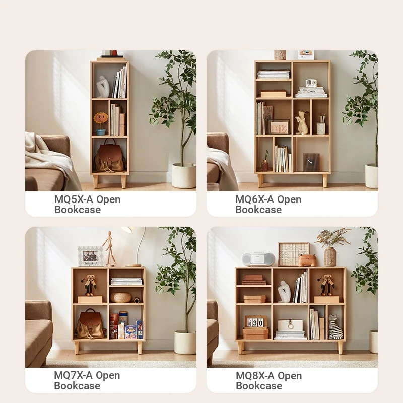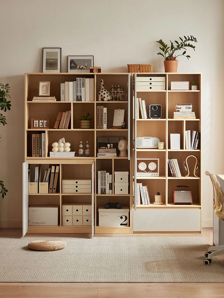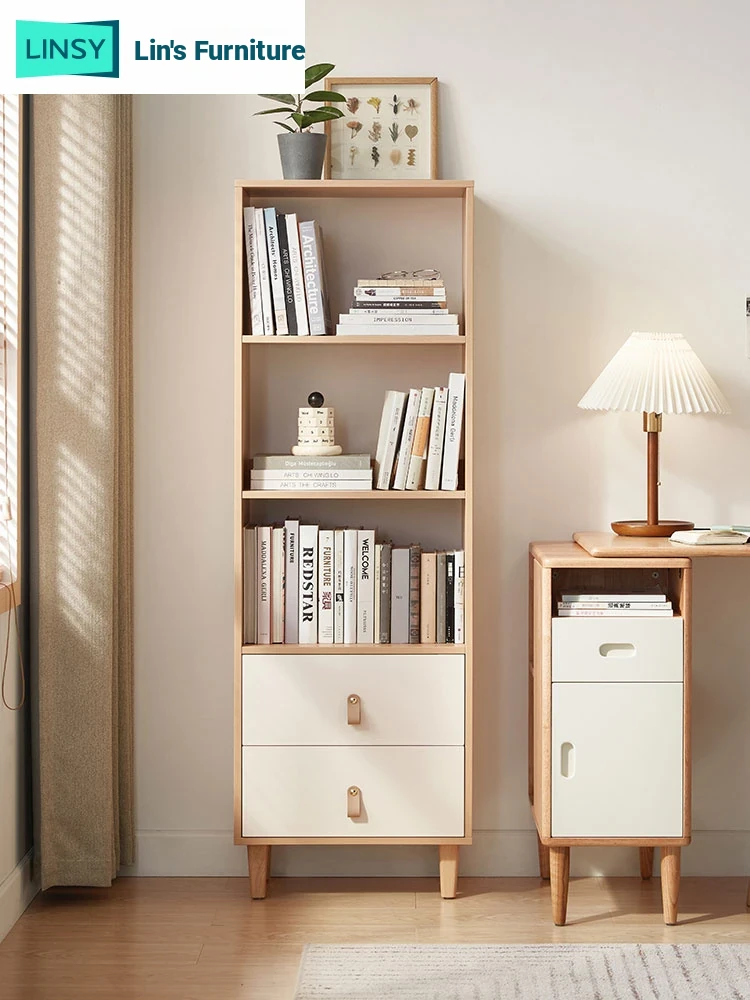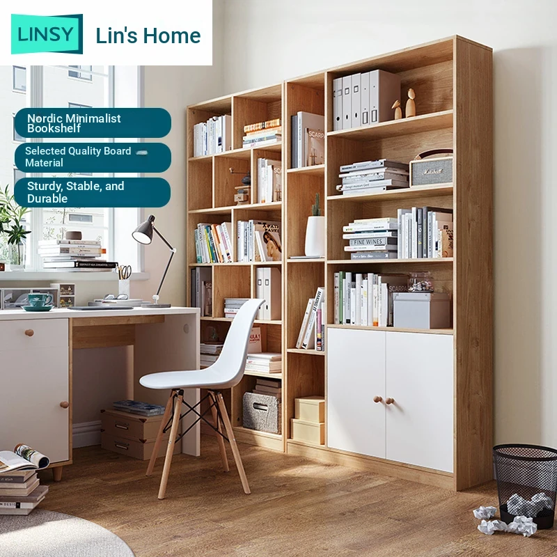 "Lin's Furniture Scandinavian Style Solid Wood Bookshelf with Display Cabinet - Natural Wood Living Room Storage Unit, Perfect for Home & Organizing Your Space"
