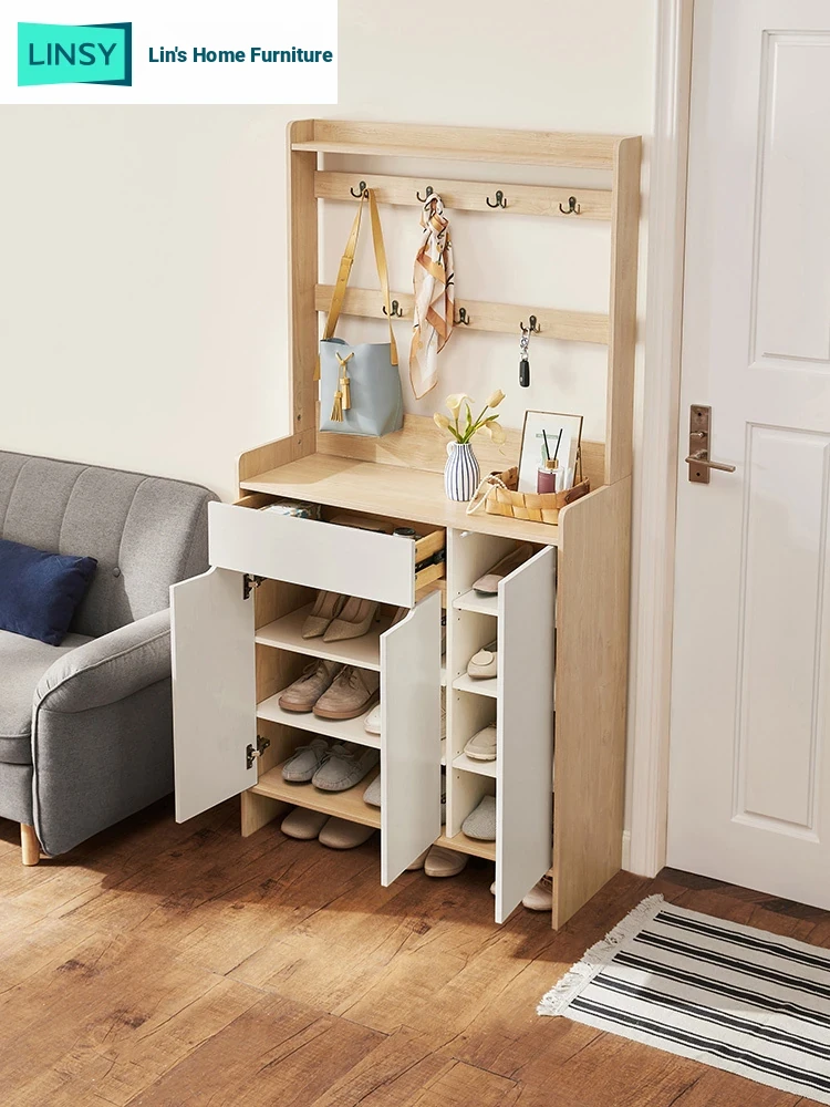 "Lin's Home Scandinavian Minimalist Modern Wooden Shoe Cabinet - Elegant Entryway Storage Unit for Home"
