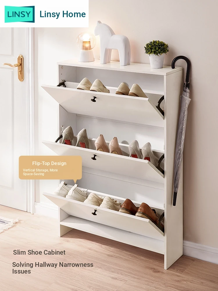 Lins Home Slim Entryway Shoe Cabinet - Ultra-Thin Indoor Flip-Top Storage Unit for Space-Saving Entryway Organization - Stylish and Functional Design by Lins Woodwork