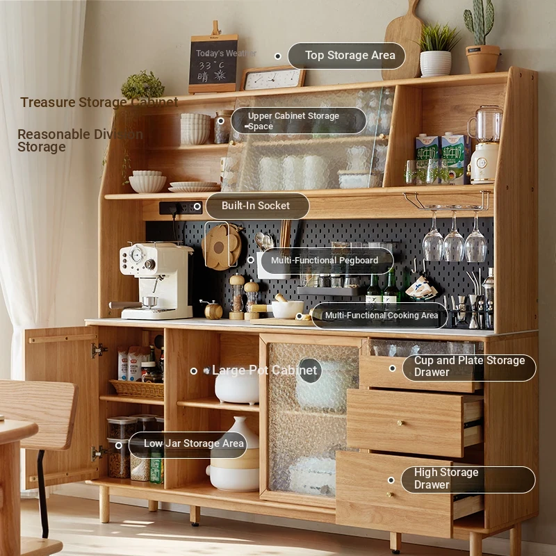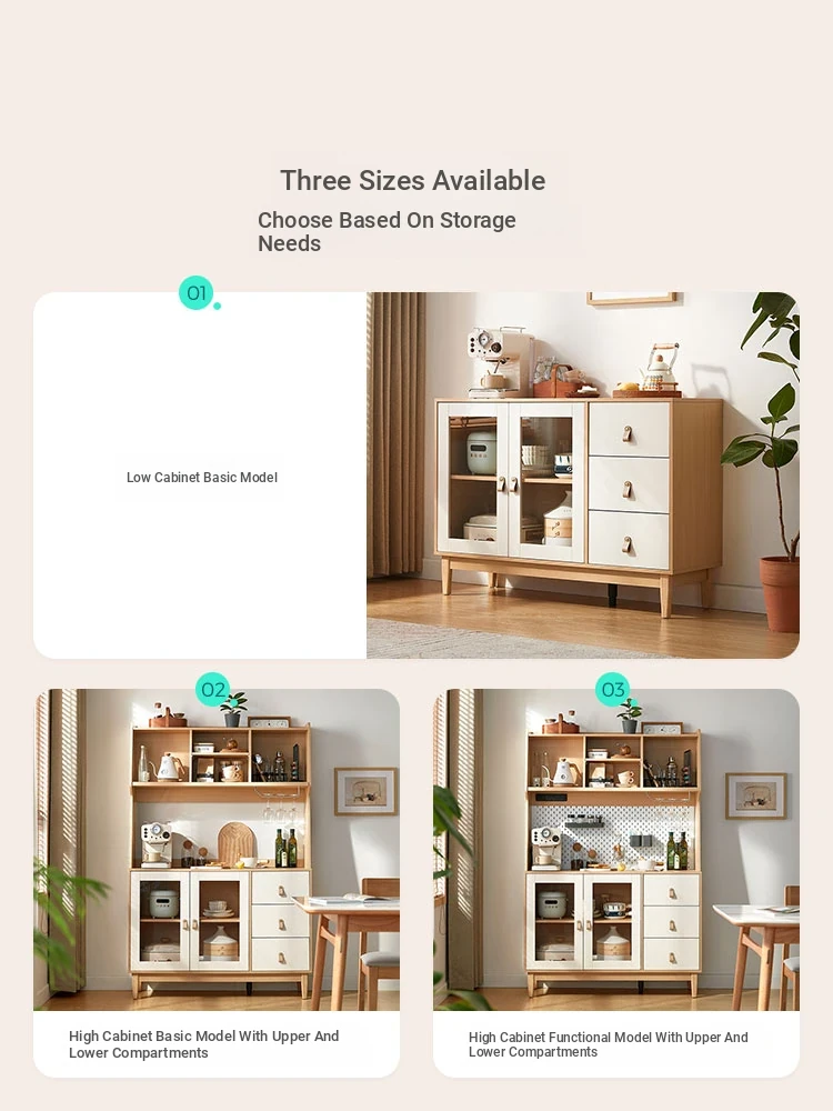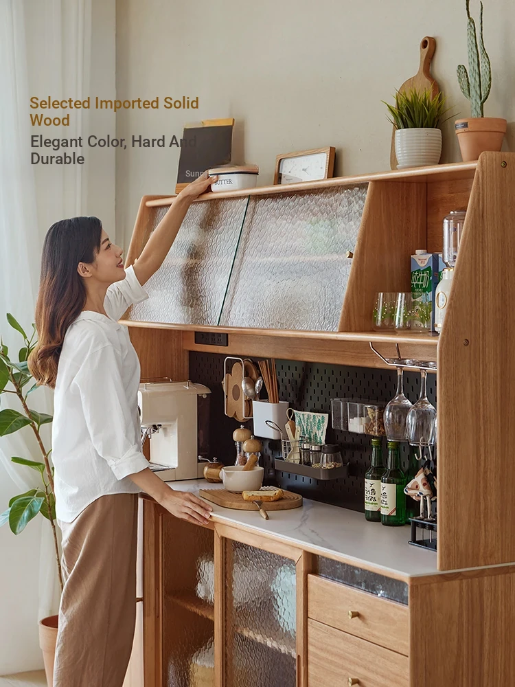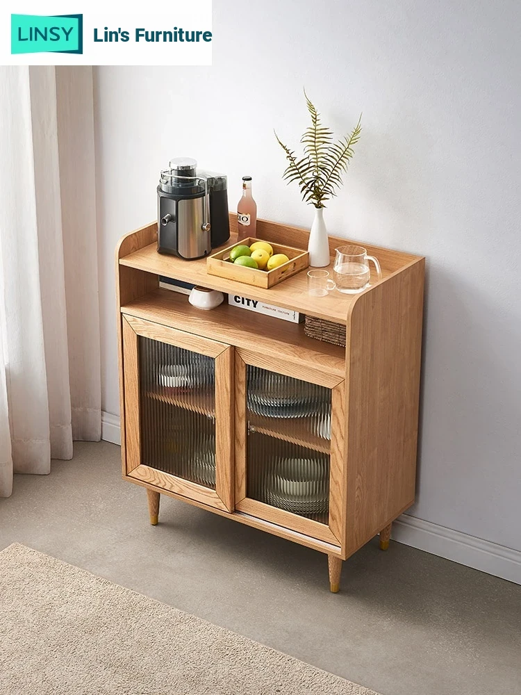 Linsy Furniture Multifunctional Solid Wood Sideboard - Stylish Tea and Snack Storage Cabinet for Living Room, Space-Saving Wall-Mounted Design - Model PK1T