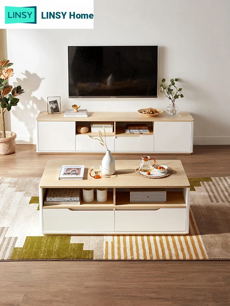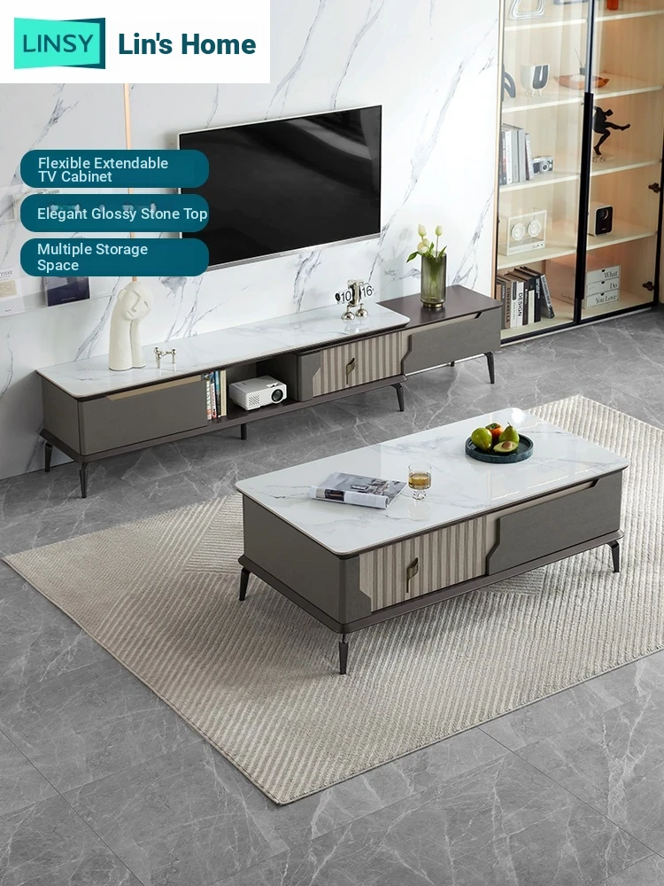 Linsy Italian Minimalist Rock Panel TV Stand and Coffee Table Set - Modern Storage Furniture for Living Room, Home Use (Model: LS866)