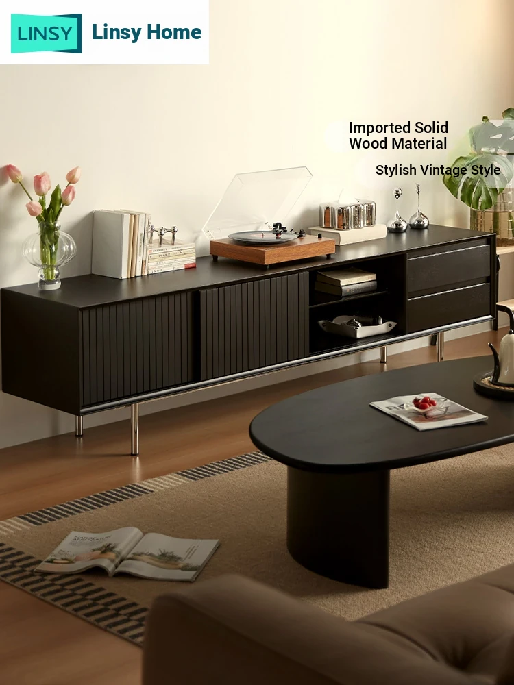"Lin's Home Chic Vintage Solid Wood TV Cabinet and Coffee Table Set – Luxurious Retro Style Furniture for a Timeless Living Room"