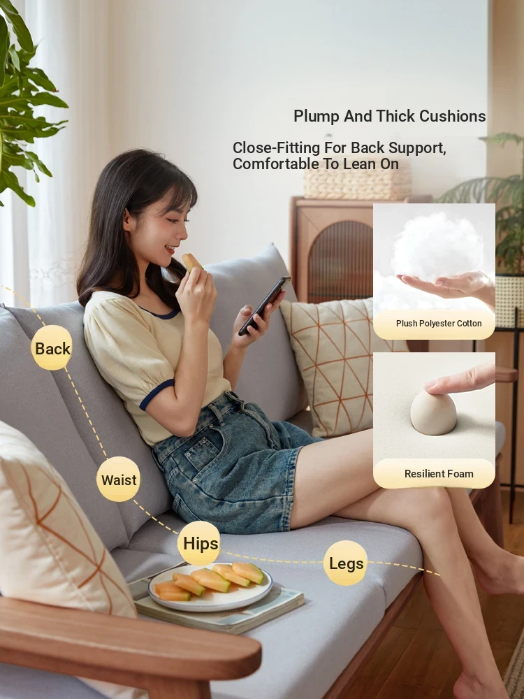Linsy Home New Chinese Style Walnut Solid Wood Sofa - Versatile Upholstered Furniture for Year-Round Comfort in Your Living Room