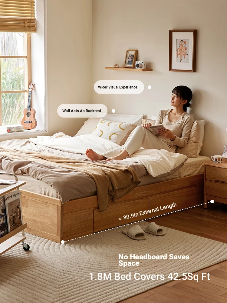 Linsy Home Solid Wood Tatami Bed Frame with No Headboard - High Storage Platform Bed with Slatted Base - Xiaoman Series for Stylish and Functional Living Spaces