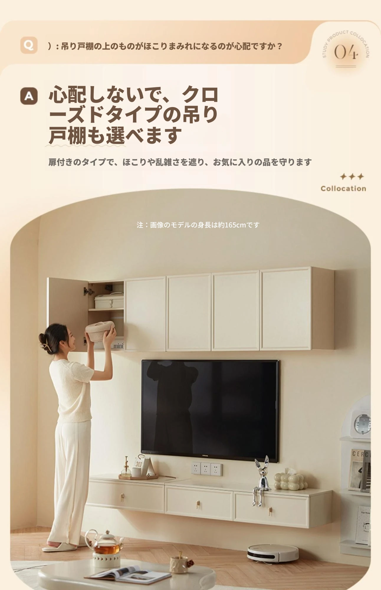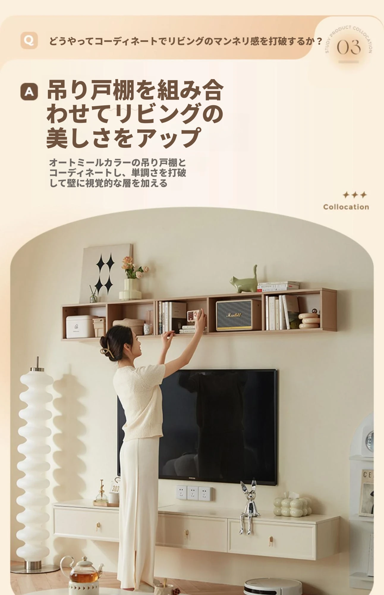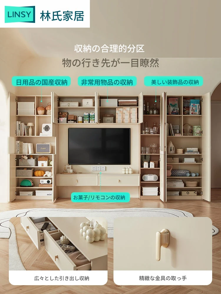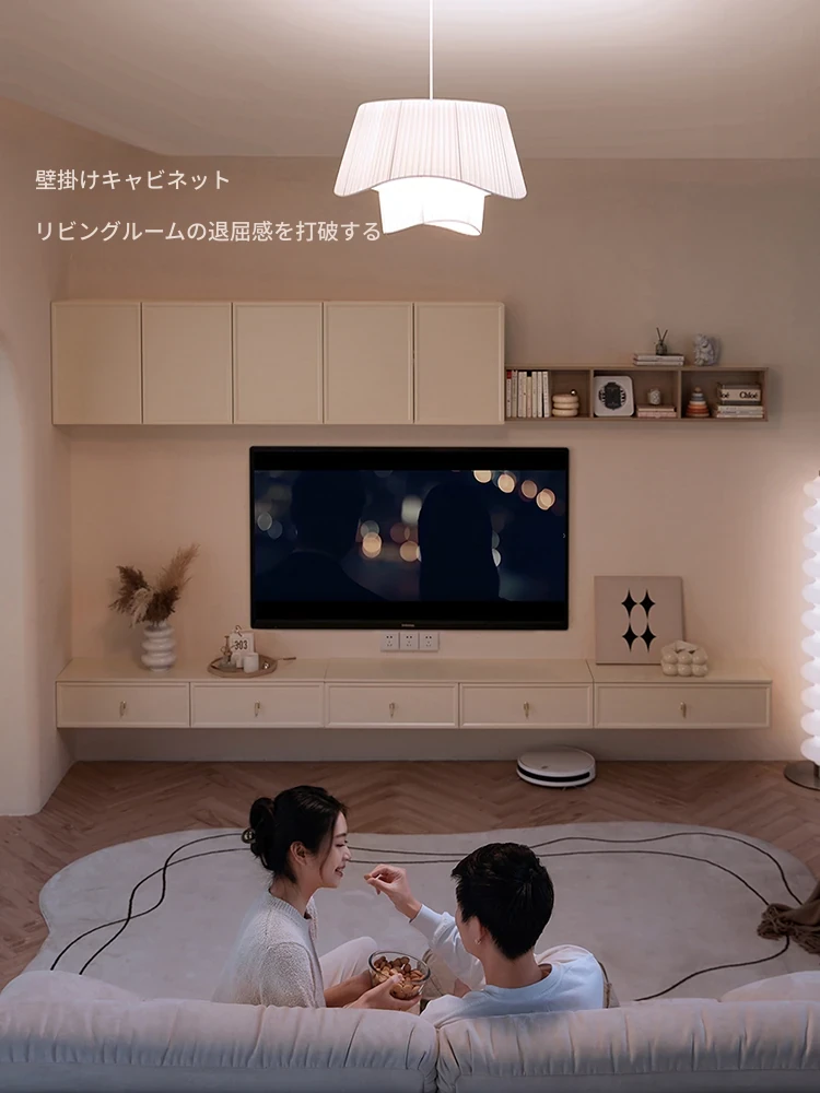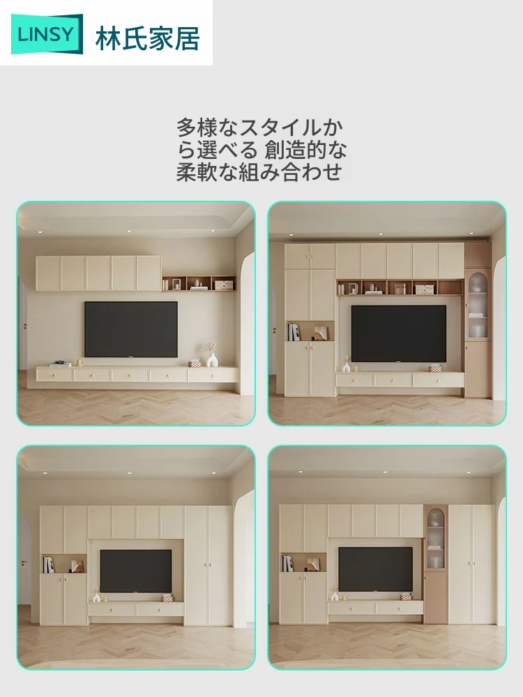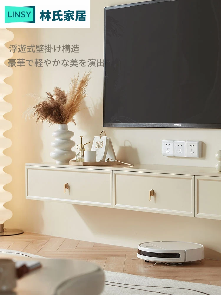 林氏家居リビングルームクリームカラー浮遊テレビボード収納キャビネット一体型吊り棚セット - 林氏木業TO1Mでスタイリッシュな空間を演出!