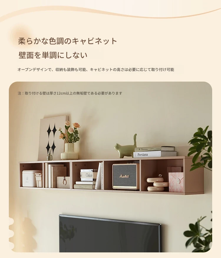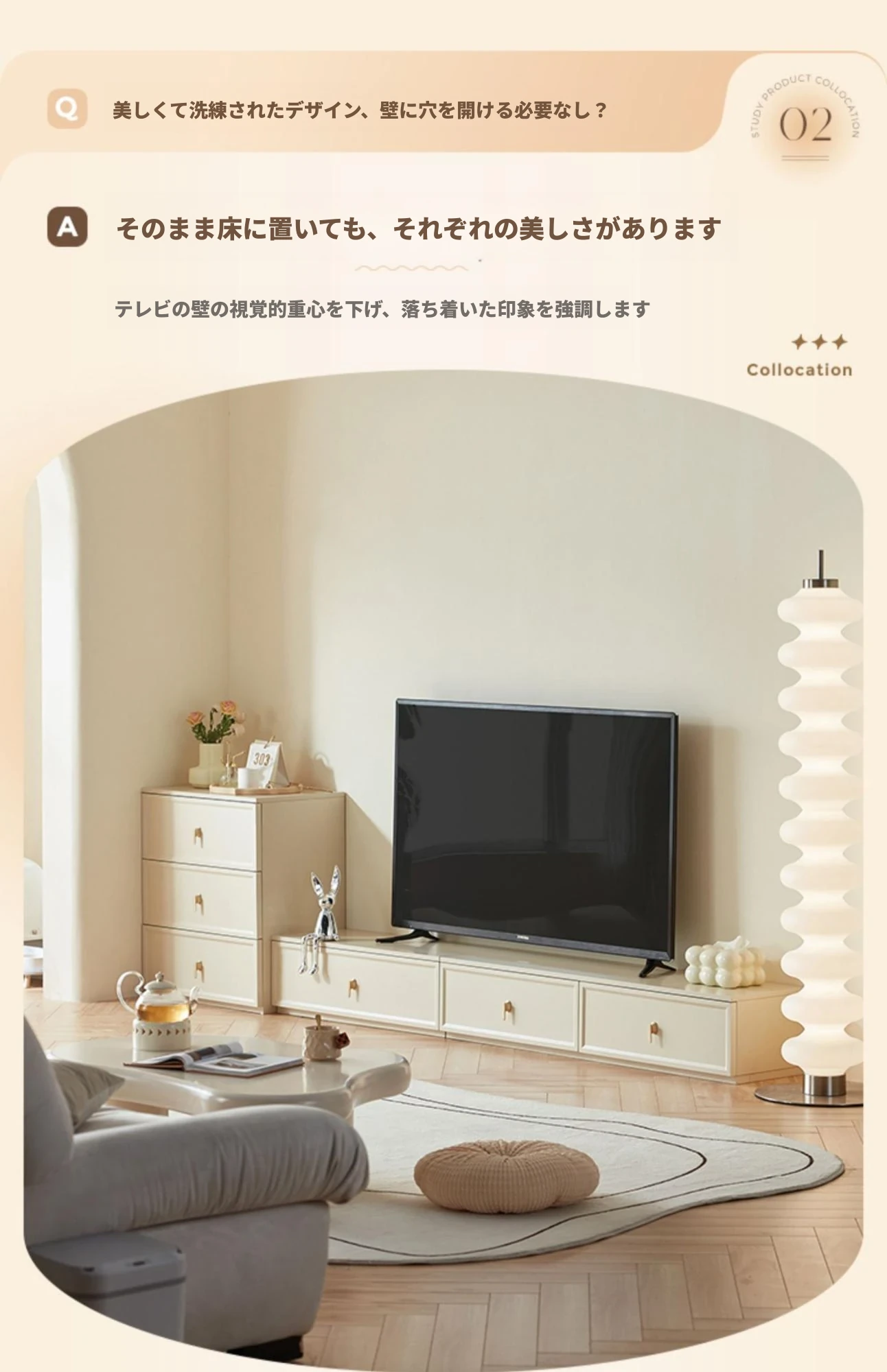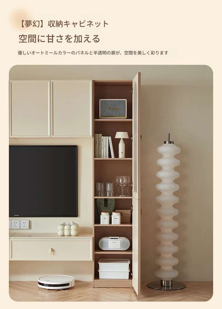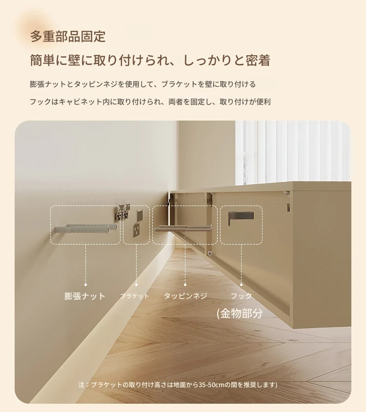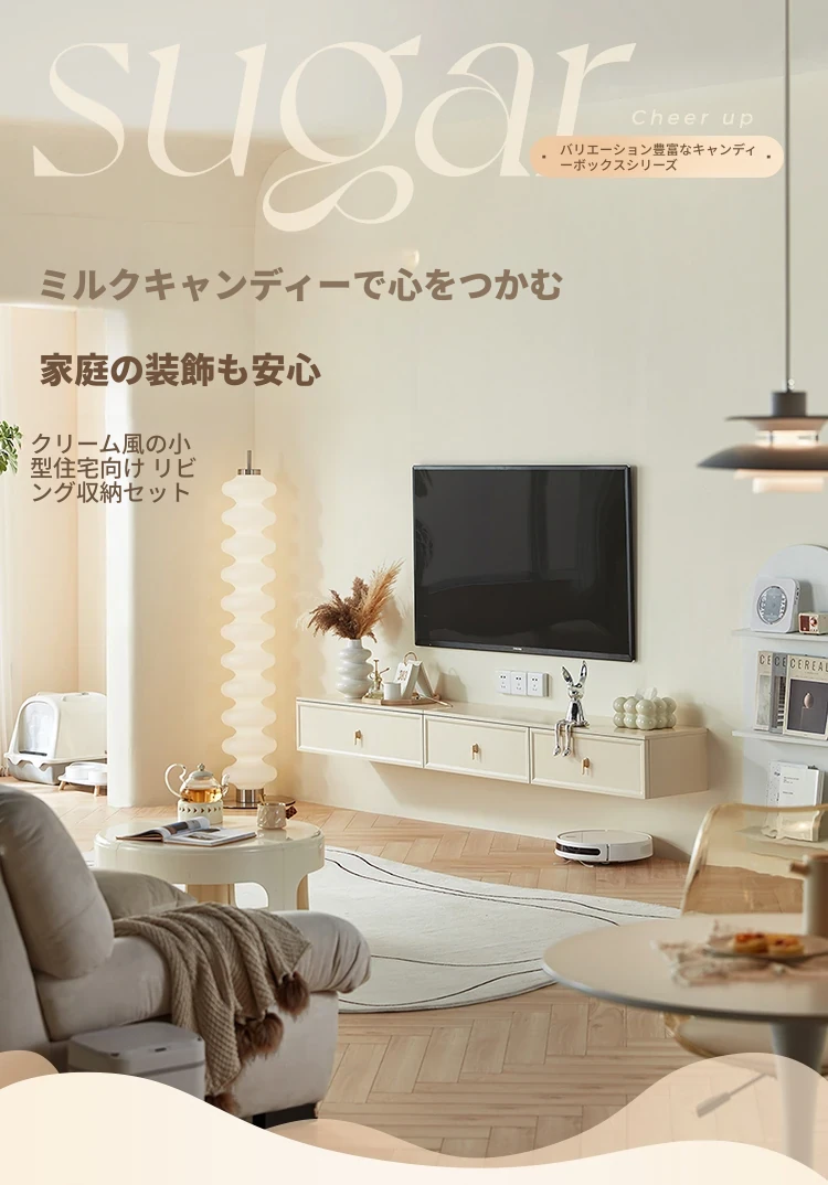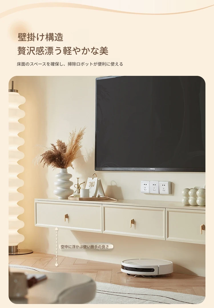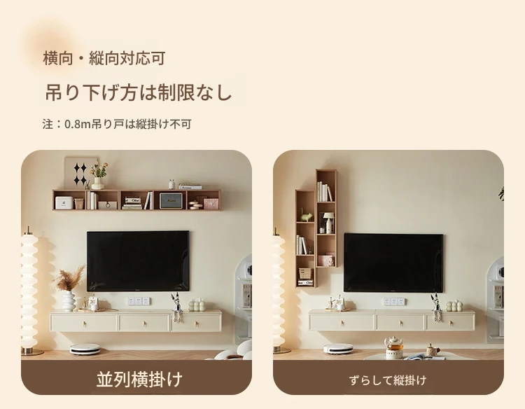 林氏家居リビングルームクリームカラー浮遊テレビボード収納キャビネット一体型吊り棚セット - 林氏木業TO1Mでスタイリッシュな空間を演出!