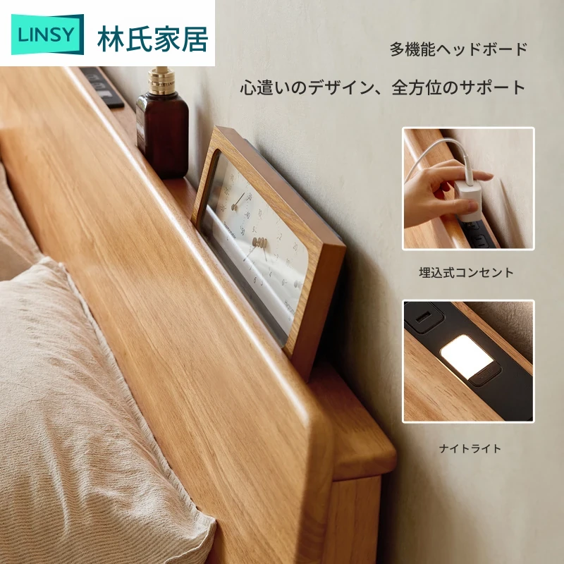 林氏家居北欧スタイルの無垢材フルシングルベッド - 洗練されたモダンデザイン、1.5mの広々とした寝心地で、心地よい安らぎを提供!主寝室に最適なシンプルでスタイリッシュな日式ベッドPK13A。
