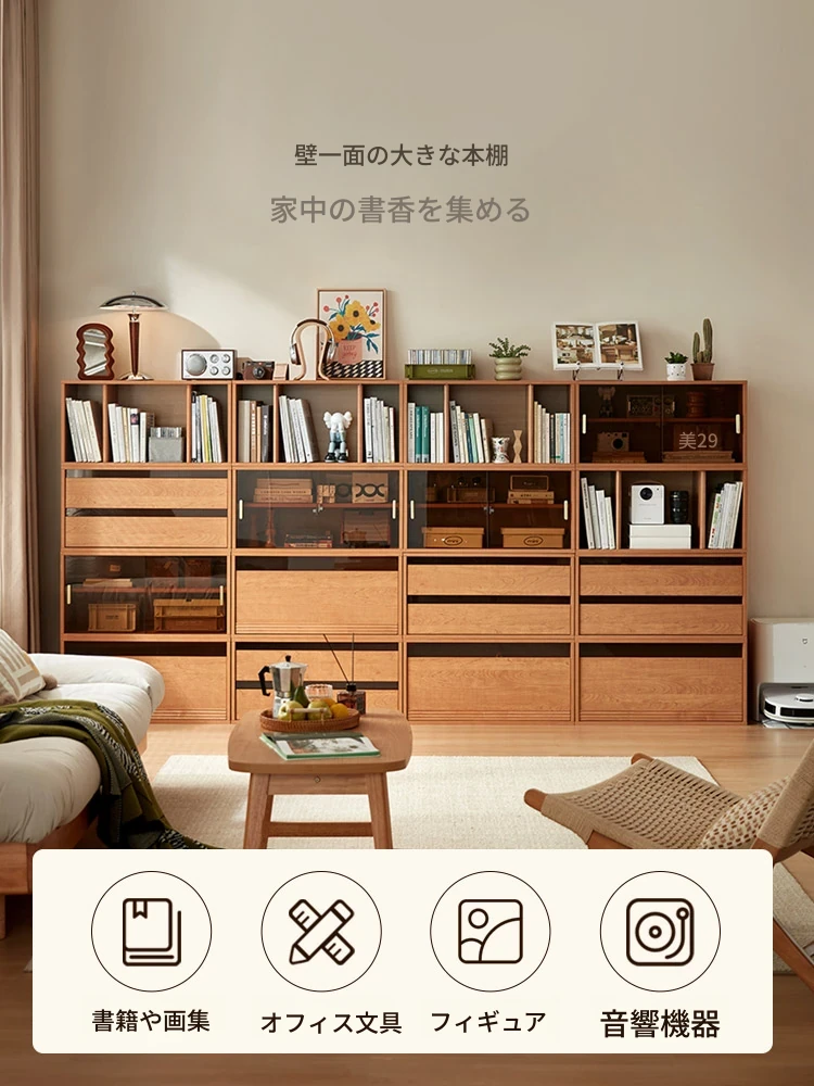 林氏家居の自由に組み合わせ可能なガラス扉付き本棚、階段下の収納キャビネット、リビングルームにぴったりな展示モジュールキャビネット!おしゃれで機能的な収納を実現し、空間を有効活用しましょう。