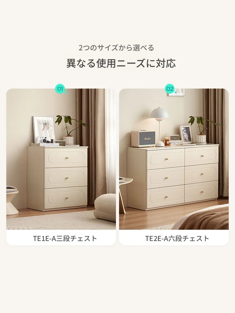 リンシー家居のクリームカラーのベッドサイドチェスト - シンプルでモダンなデザイン、リビングや寝室にぴったりの6drawer収納チェスト。洗練された美しさと機能性を兼ね備えたおしゃれな家具です。